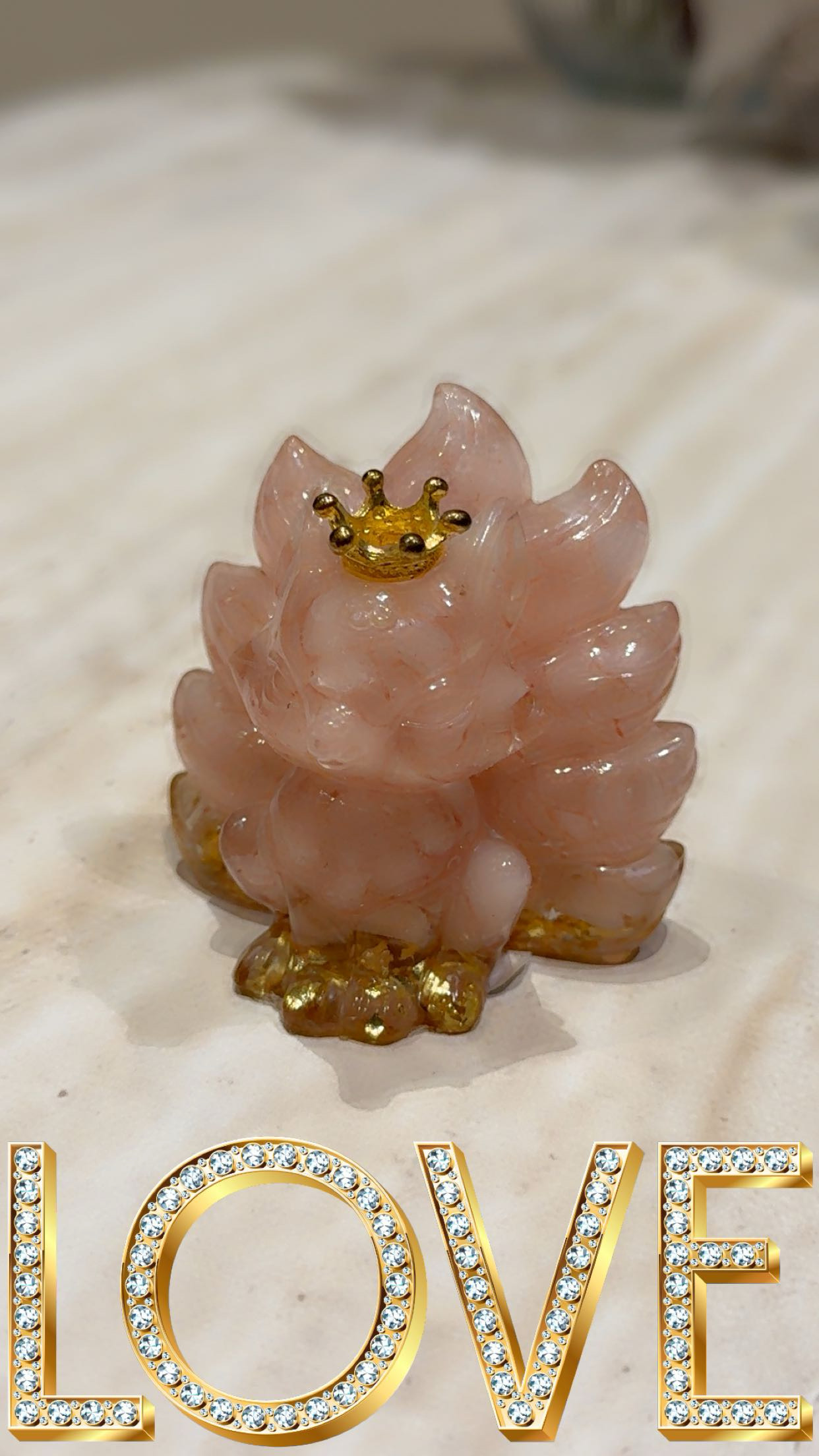 تحفة من حجر الروز كوارتز التنين ذو التاج الذهبي