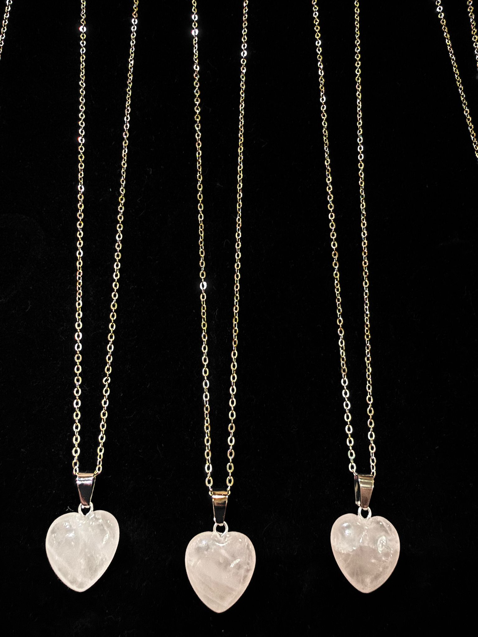 قلب روز كوارتز مع سلسلة فضة